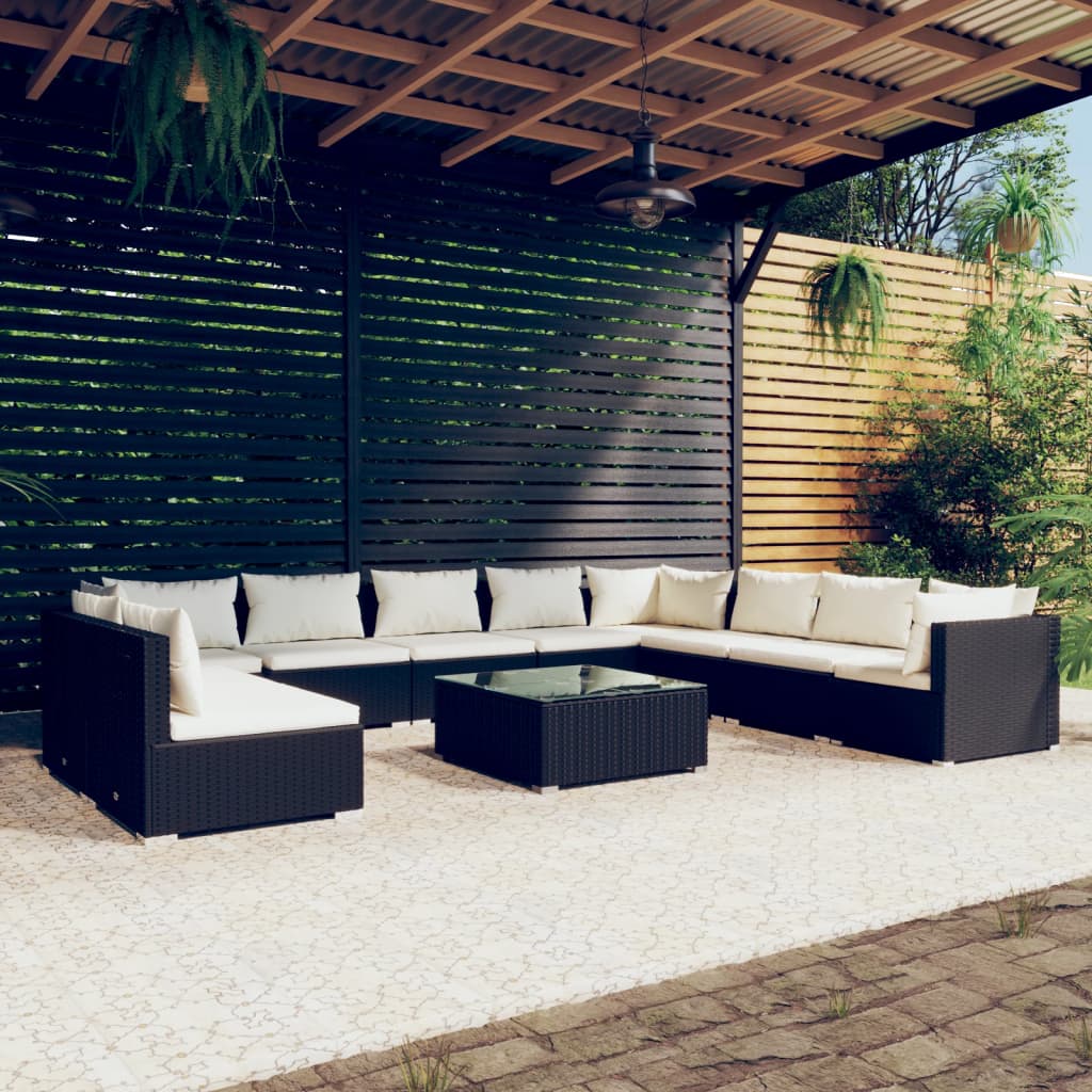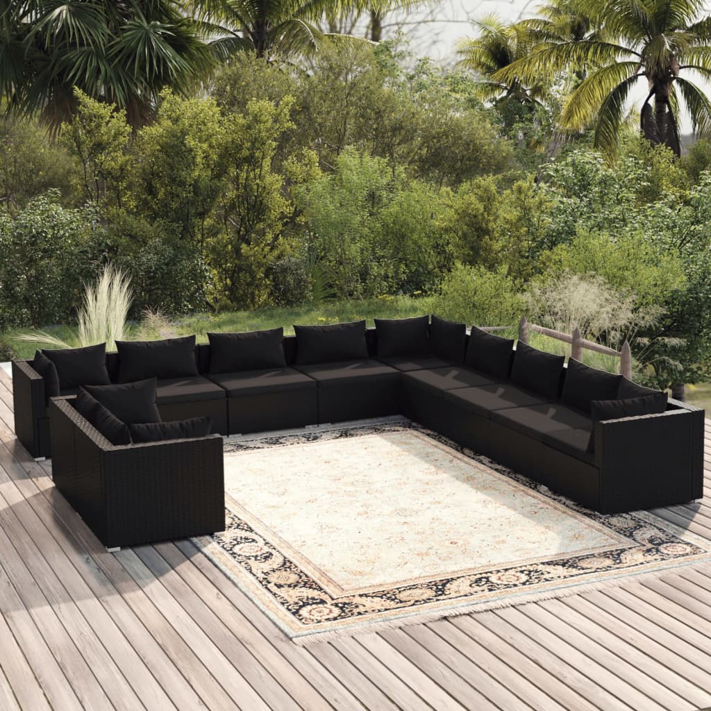 vidaXL 11 Piece Garden Lounge Set with Cushions Black Poly Rattan