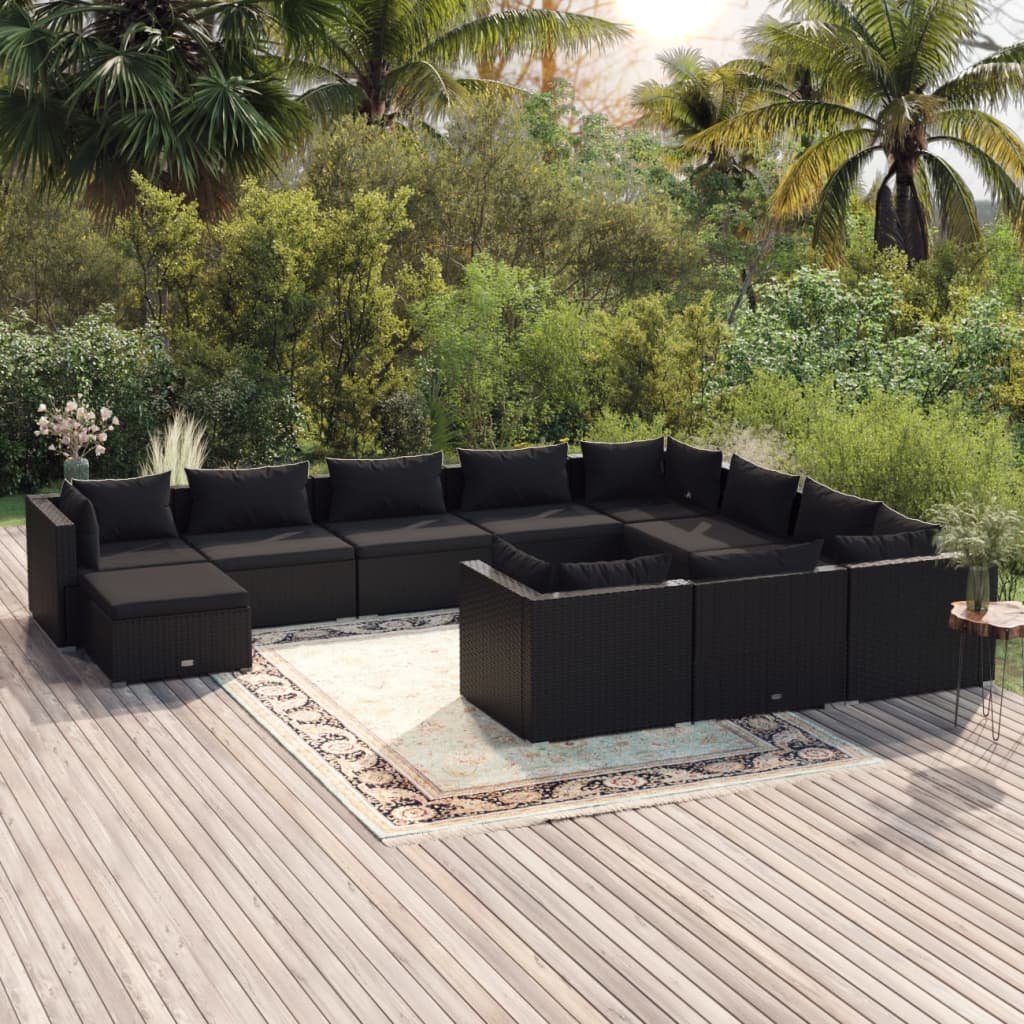 vidaXL 11 Piece Garden Lounge Set with Cushions Poly Rattan Black