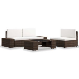 vidaXL 4 Piece Garden Lounge Set Poly Rattan Brown