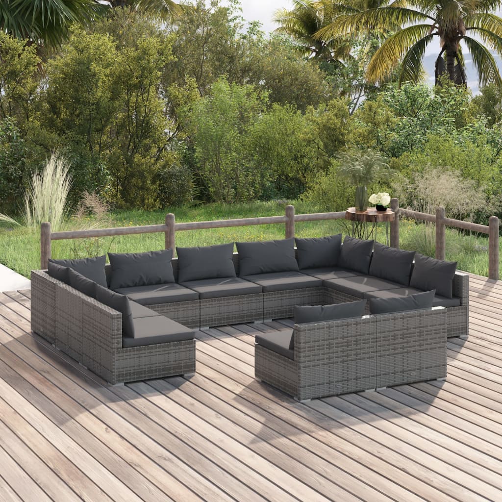 vidaXL 11 Piece Garden Lounge Set with Cushions Grey Poly Rattan