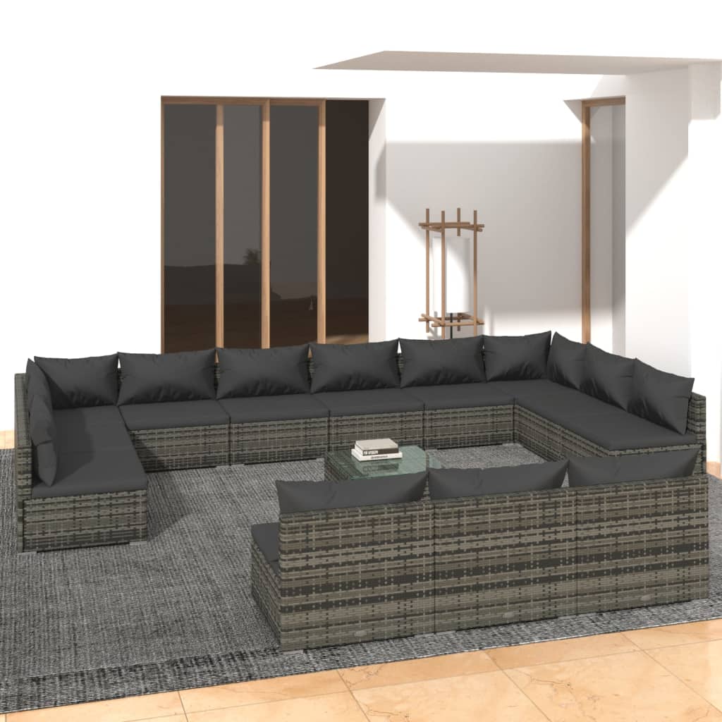 vidaXL 13 Piece Garden Sofa Set with Cushions Grey Poly Rattan