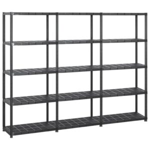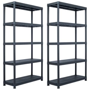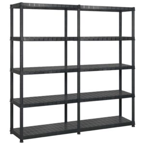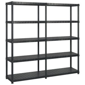 vidaXL Storage Shelf Racks 5 pcs Black 125 kg 60x30x180 cm Plastic