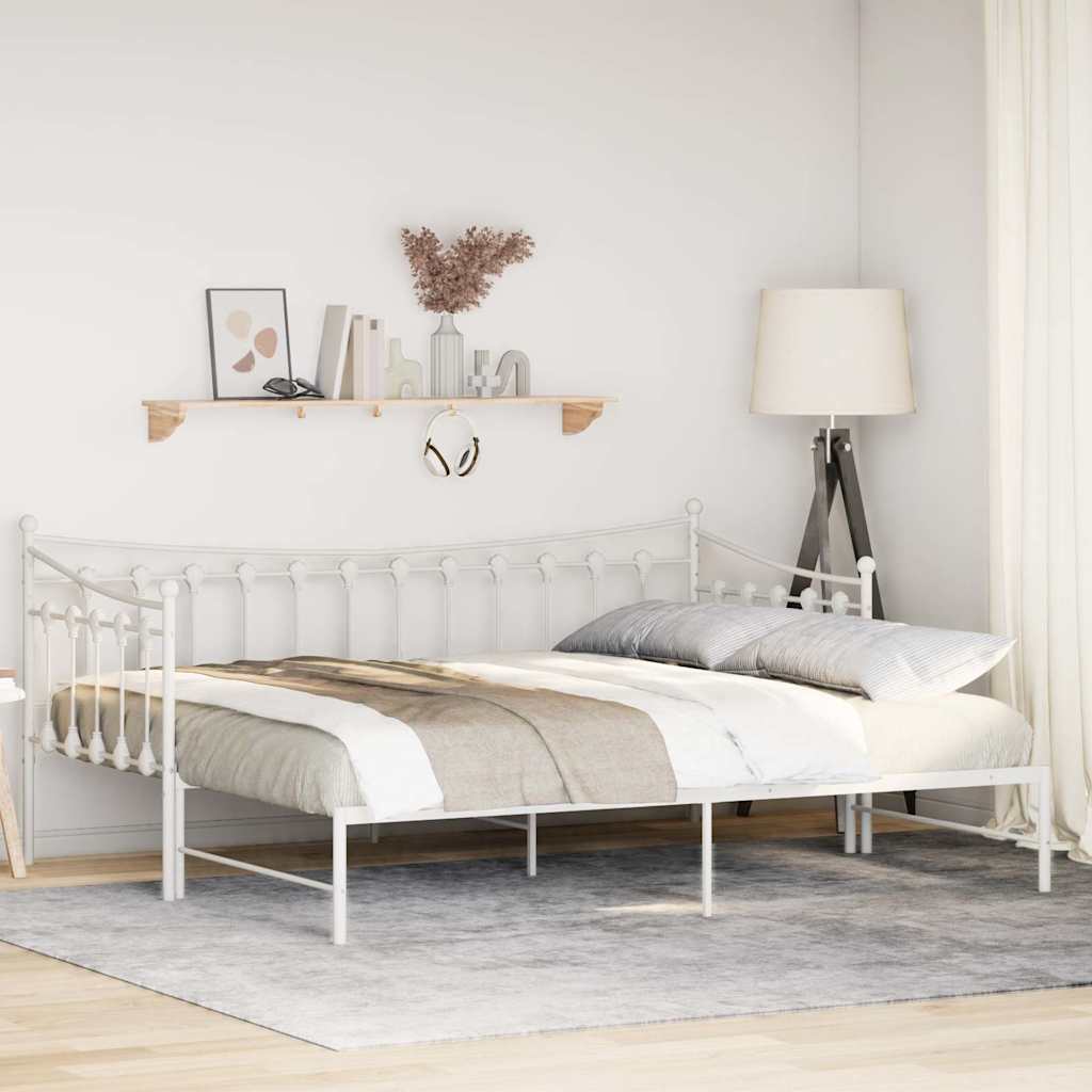 vidaXL Daybed with Trundle without Mattress White 92×187 cm Single Metal