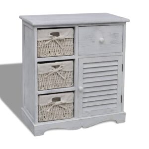 vidaXL Wooden Cabinet 3 Left Weaving Baskets White