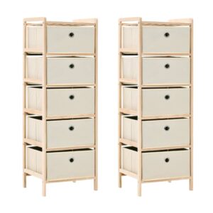 vidaXL Storage Racks with 5 Fabric Baskets 2 pcs Beige Cedar Wood