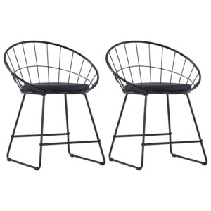 vidaXL Dining Chairs with Faux Leather Seats 2 pcs Black Steel