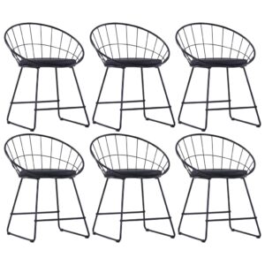 vidaXL Dining Chairs with Faux Leather Seats 6 pcs Black Steel