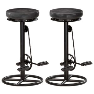 vidaXL Bar Stools 2 pcs Brown Rough Mango Wood and Real Leather
