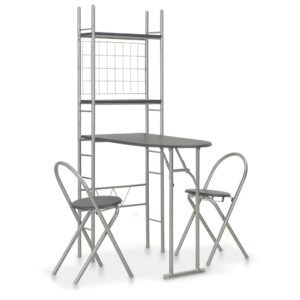 vidaXL 3 Piece Folding Dining Set with Storage Rack MDF and Steel Black