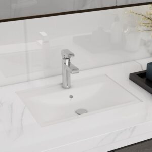 Ceramic Bathroom Sink Basin with Faucet Hole White Square