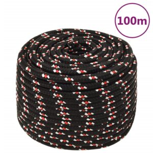 vidaXL Boat Rope Black 12 mm 100 m Polypropylene