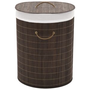 vidaXL Bamboo Laundry Bin Round Dark Brown