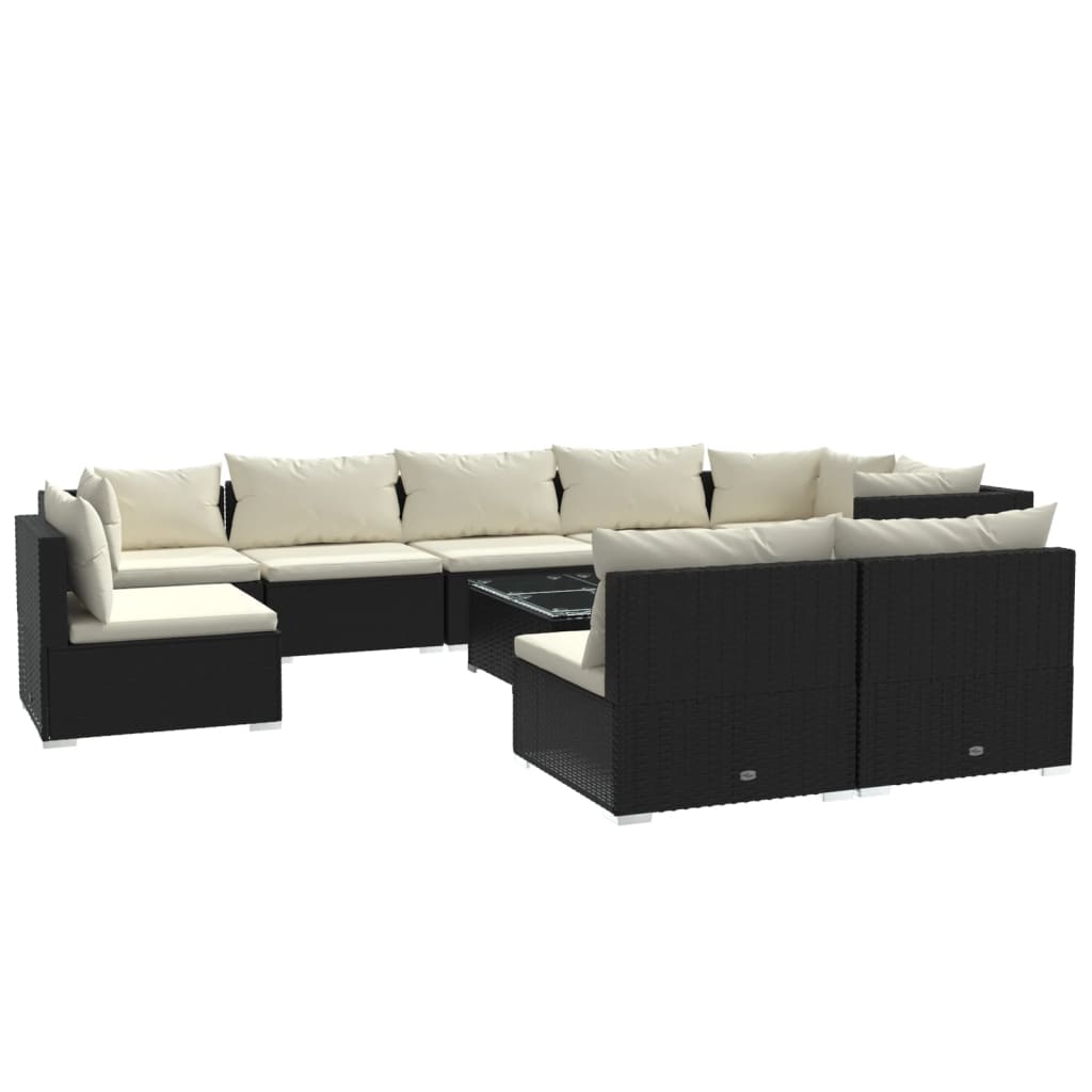 vidaXL 10 Piece Garden Lounge Set with Cushions Poly Rattan Black