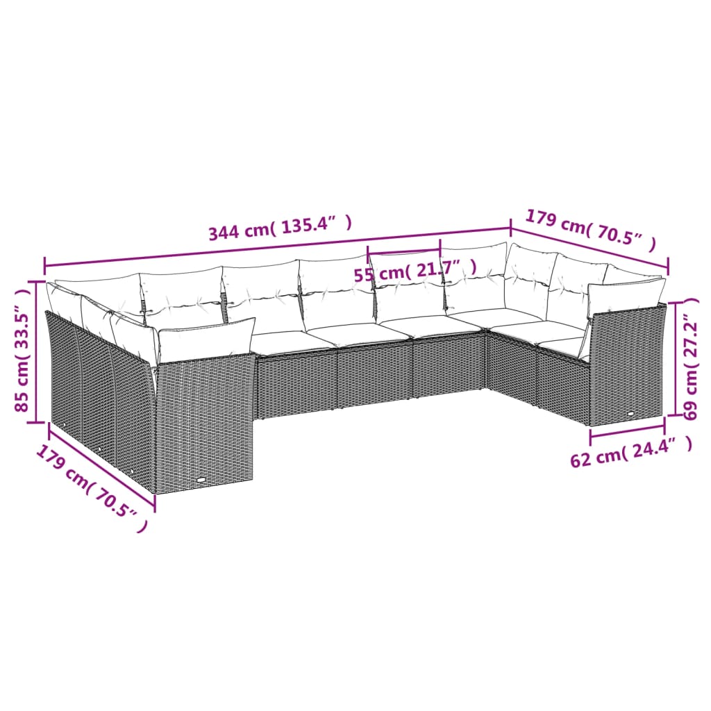 vidaXL 10 Piece Garden Sofa Set with Cushions Black Poly Rattan