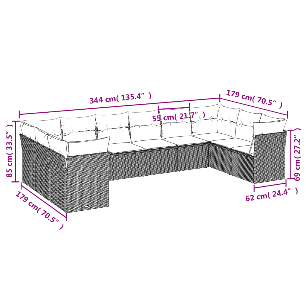 vidaXL 10 Piece Garden Sofa Set with Cushions Black Poly Rattan