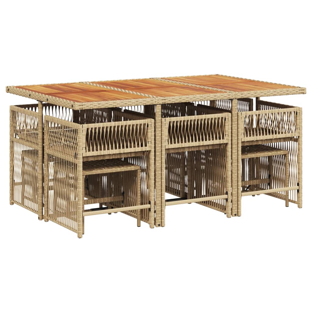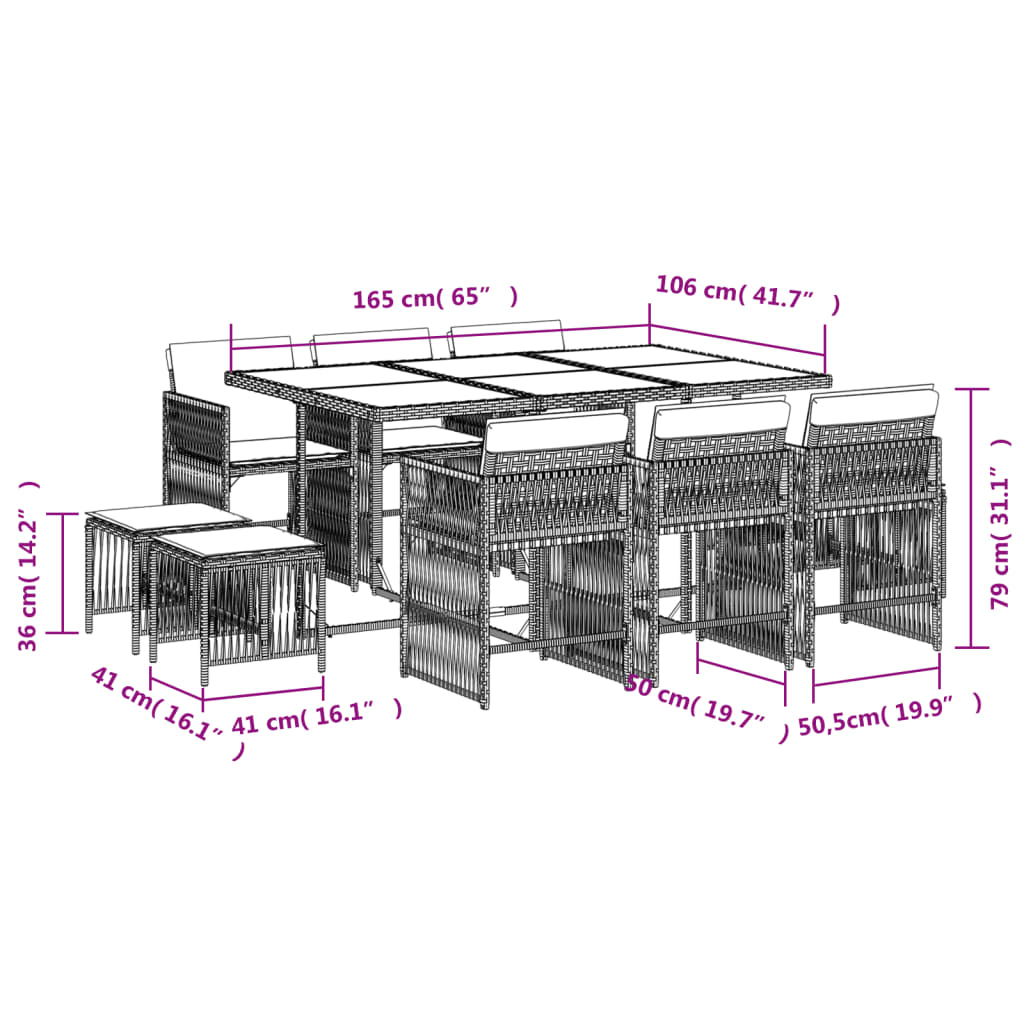 vidaXL 11 Piece Garden Dining Set with Cushions Beige Poly Rattan