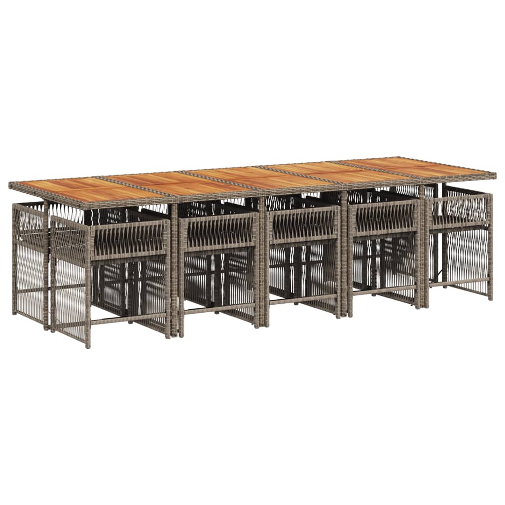 vidaXL 11 Piece Garden Dining Set with Cushions Grey Poly Rattan