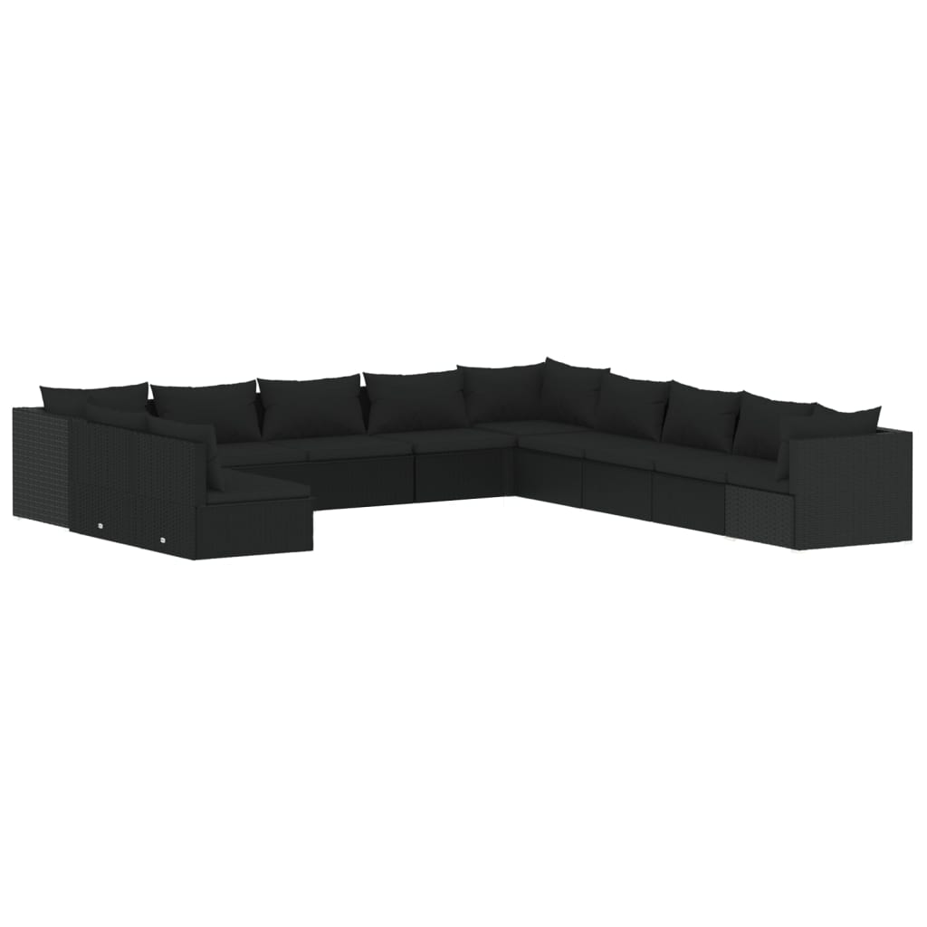 vidaXL 11 Piece Garden Lounge Set with Cushions Black Poly Rattan