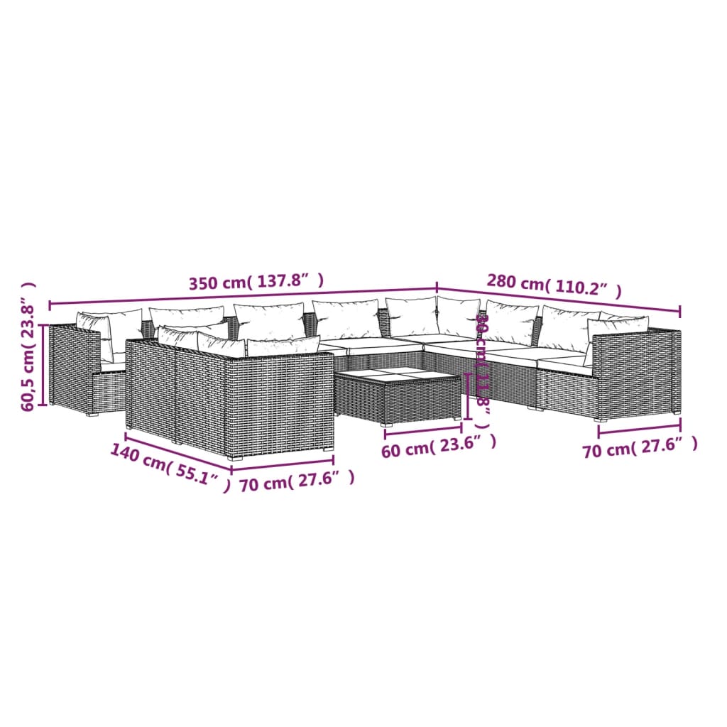 vidaXL 11 Piece Garden Lounge Set with Cushions Grey Poly Rattan