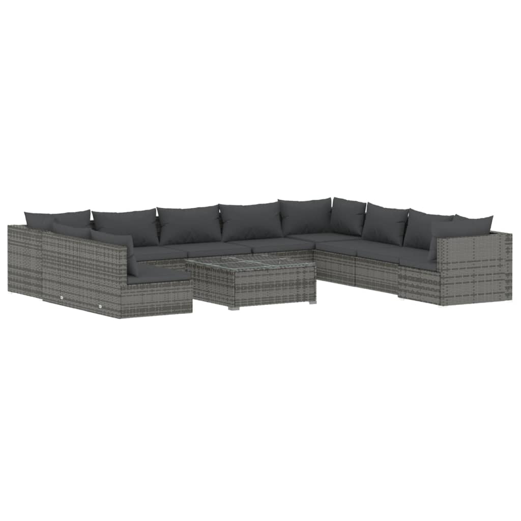 vidaXL 11 Piece Garden Lounge Set with Cushions Grey Poly Rattan
