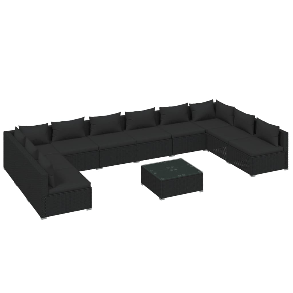 vidaXL 11 Piece Garden Lounge Set with Cushions Poly Rattan Black