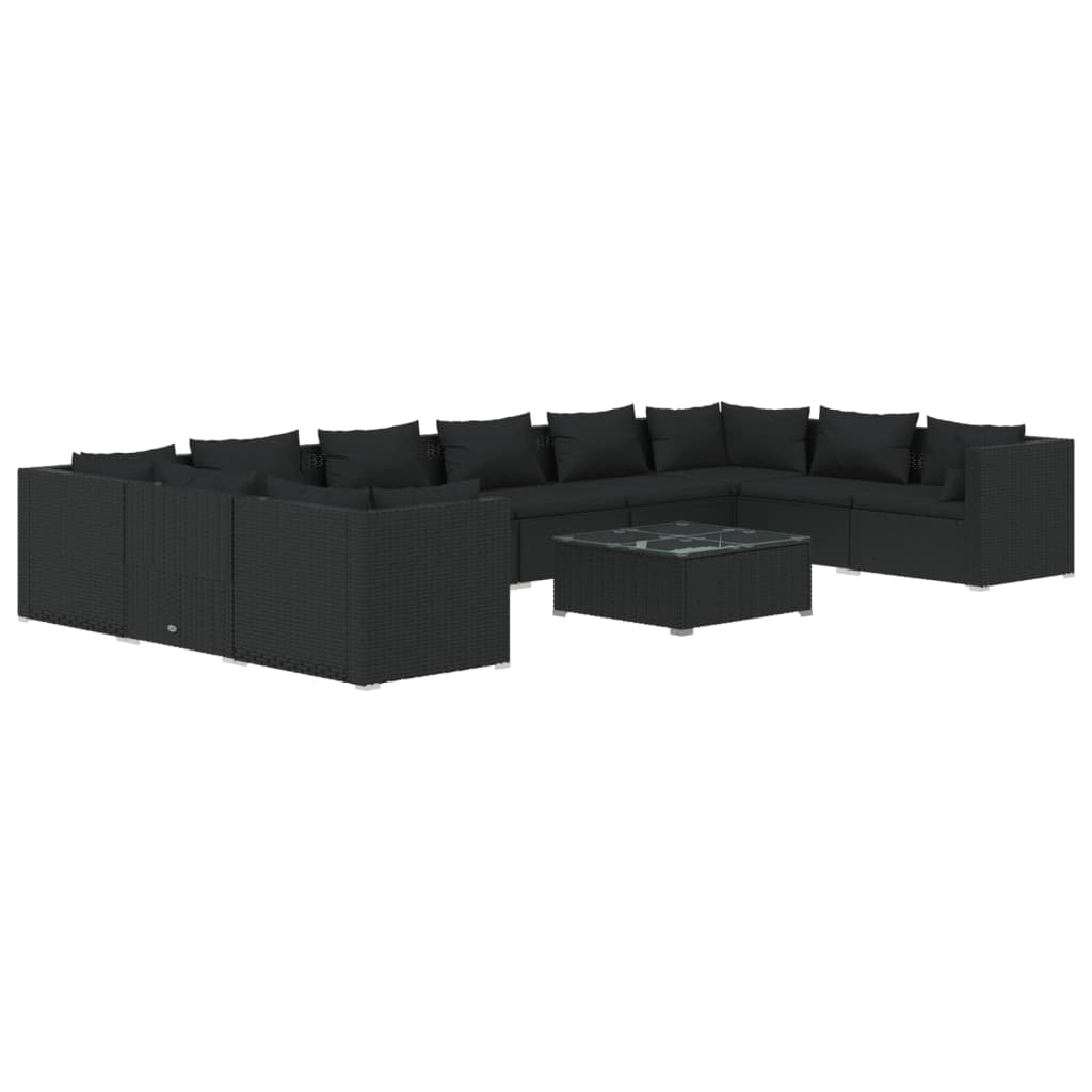 vidaXL 11 Piece Garden Lounge Set with Cushions Poly Rattan Black