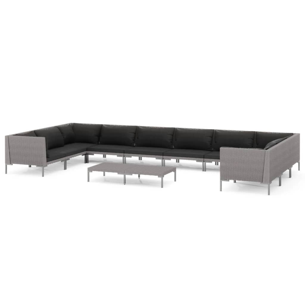 vidaXL 11 Piece Garden Lounge Set with Cushions Poly Rattan Dark Grey