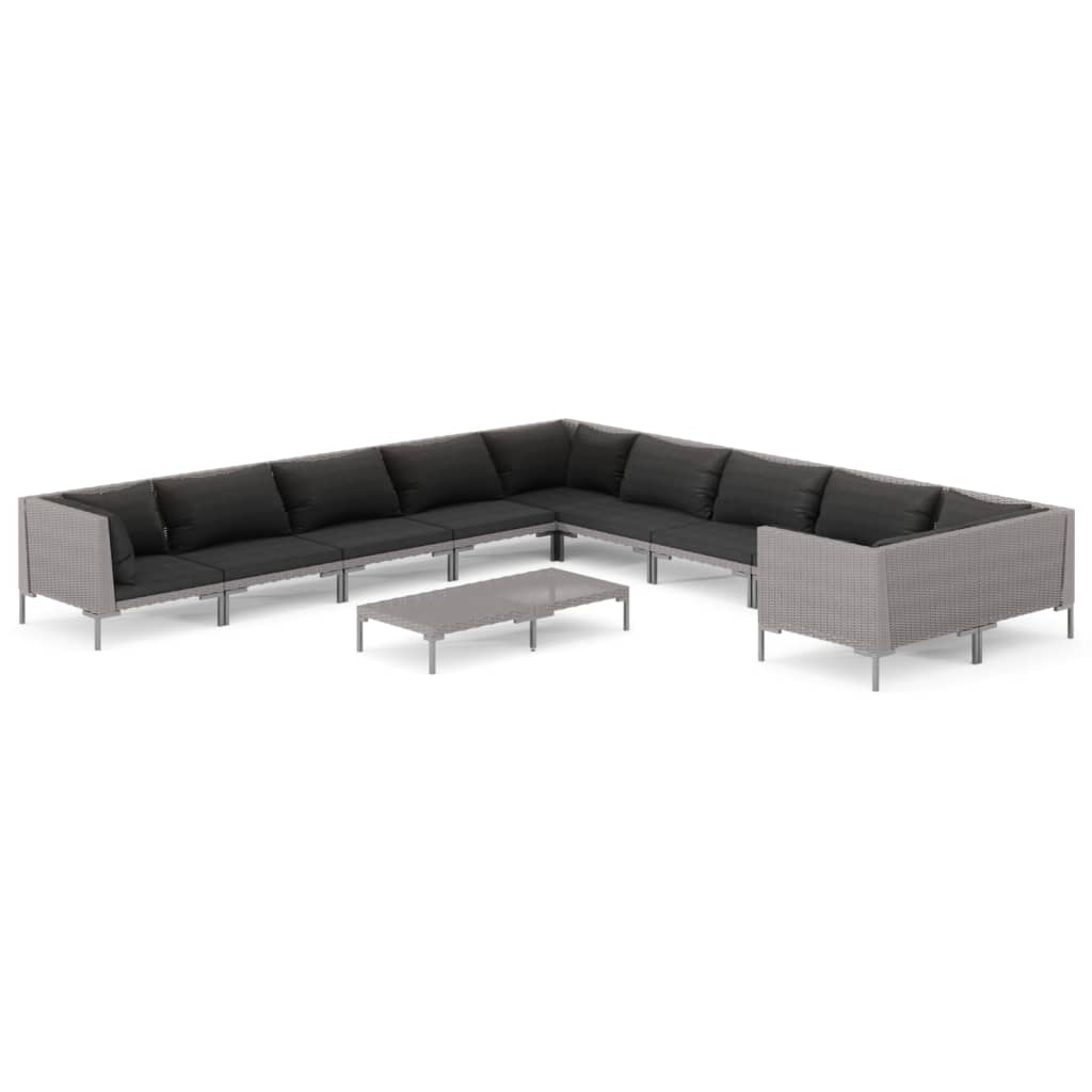 vidaXL 11 Piece Garden Lounge Set with Cushions Poly Rattan Dark Grey