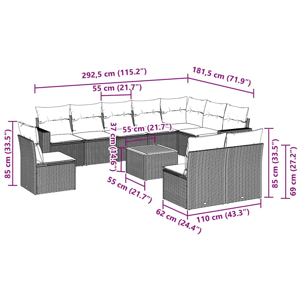 vidaXL 11 Piece Garden Sofa Set with Cushions Black Poly Rattan
