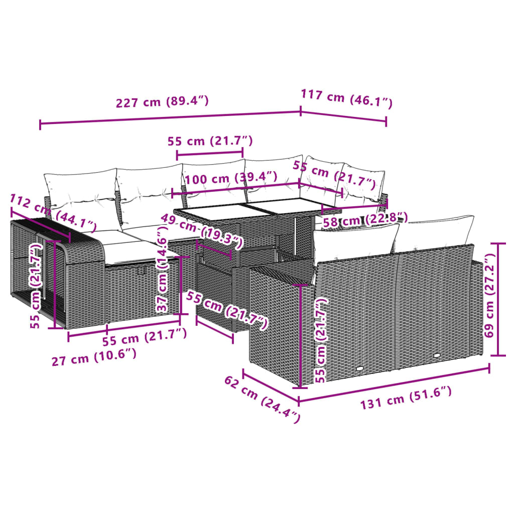 vidaXL 11 Piece Garden Sofa Set with Cushions Black Poly Rattan
