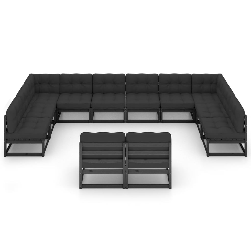 vidaXL 12 Piece Garden Lounge Set with Cushions Black Solid Pinewood