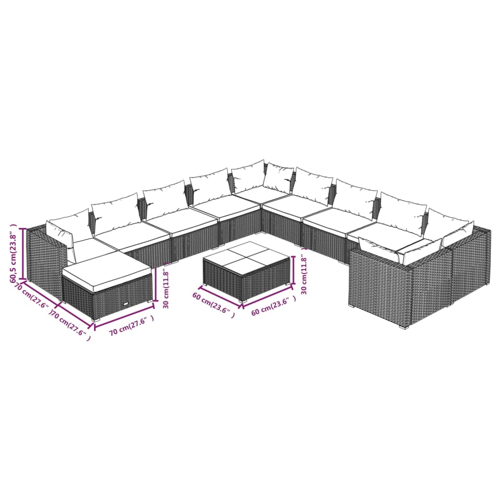 vidaXL 12 Piece Garden Lounge Set with Cushions Poly Rattan Black