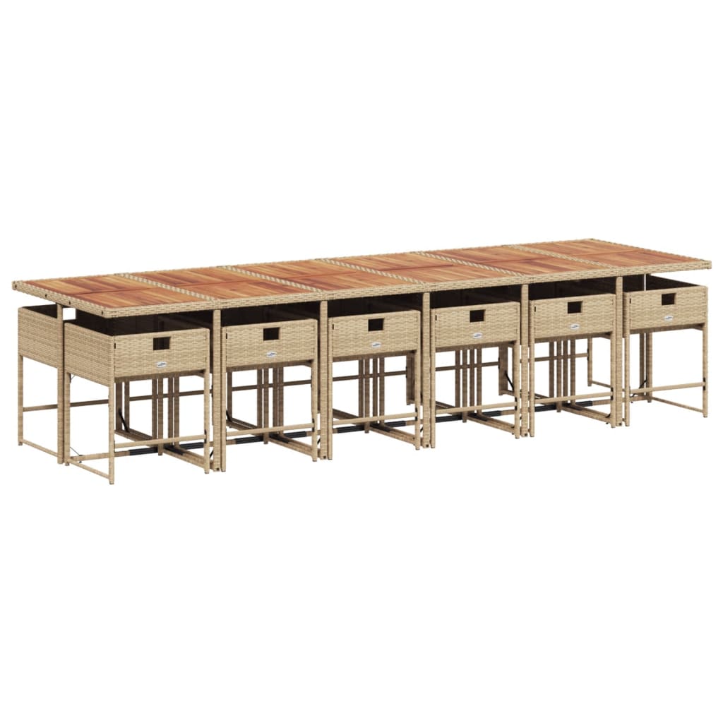 vidaXL 13 Piece Garden Dining Set with Cushions Beige Poly Rattan