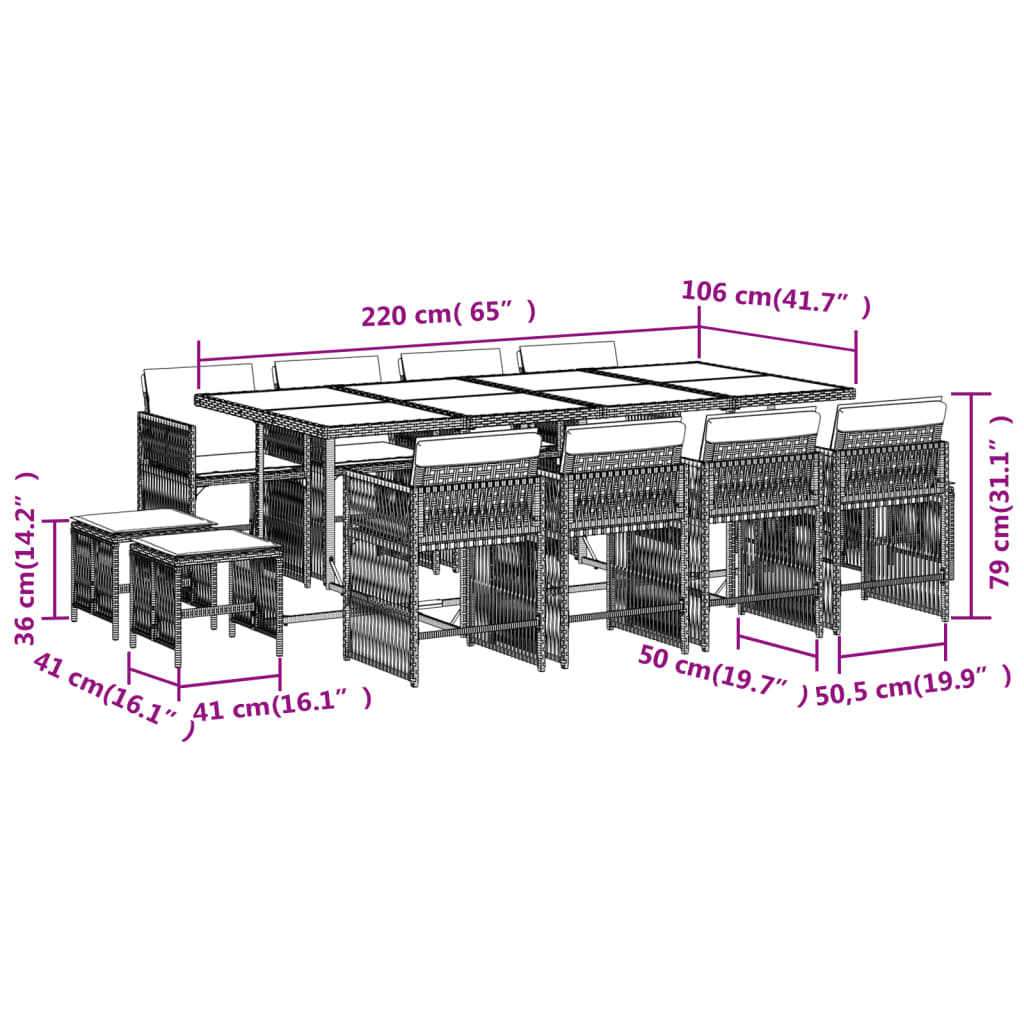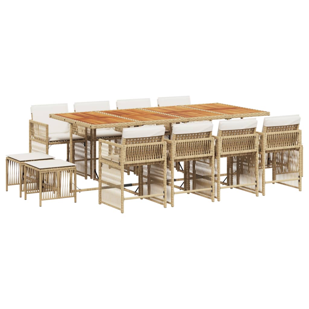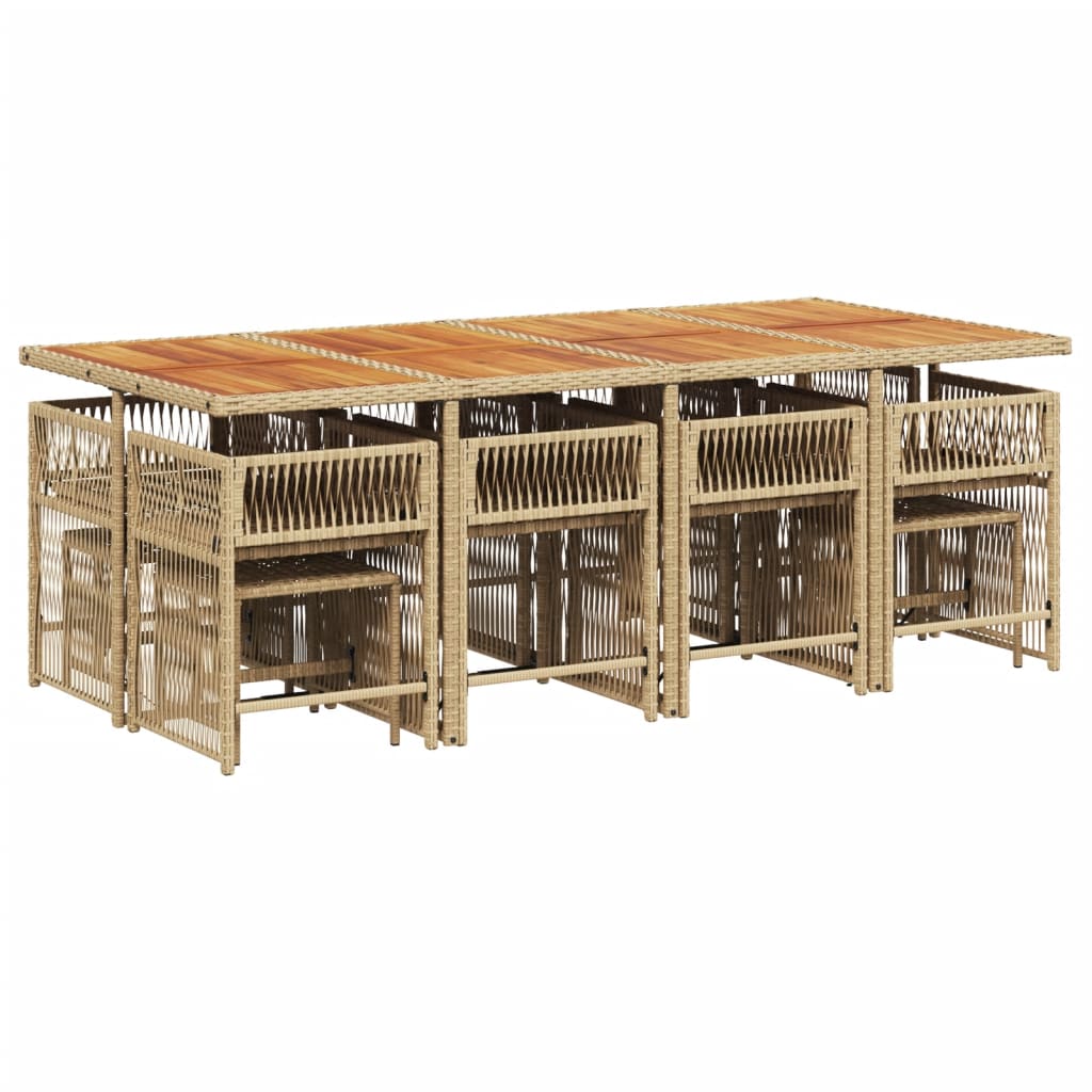 vidaXL 13 Piece Garden Dining Set with Cushions Beige Poly Rattan