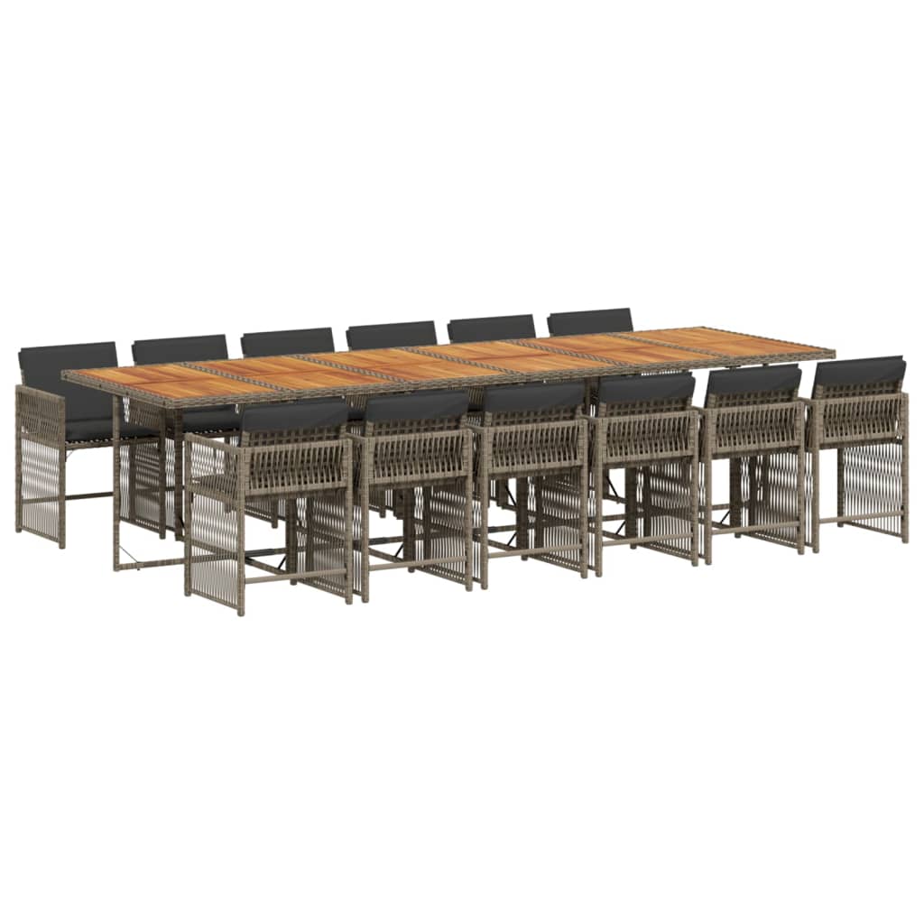 vidaXL 13 Piece Garden Dining Set with Cushions Grey Poly Rattan