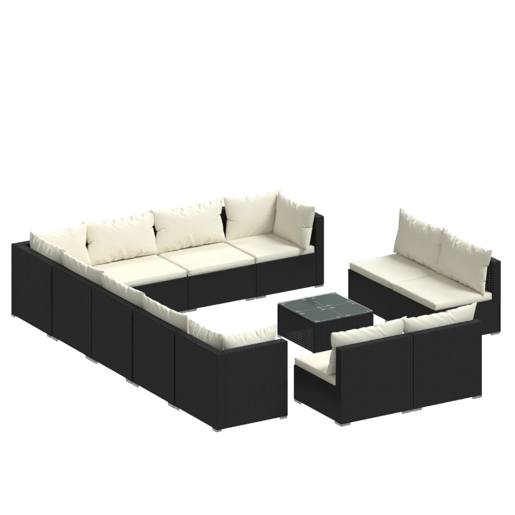 vidaXL 13 Piece Garden Lounge Set with Cushions Black Poly Rattan