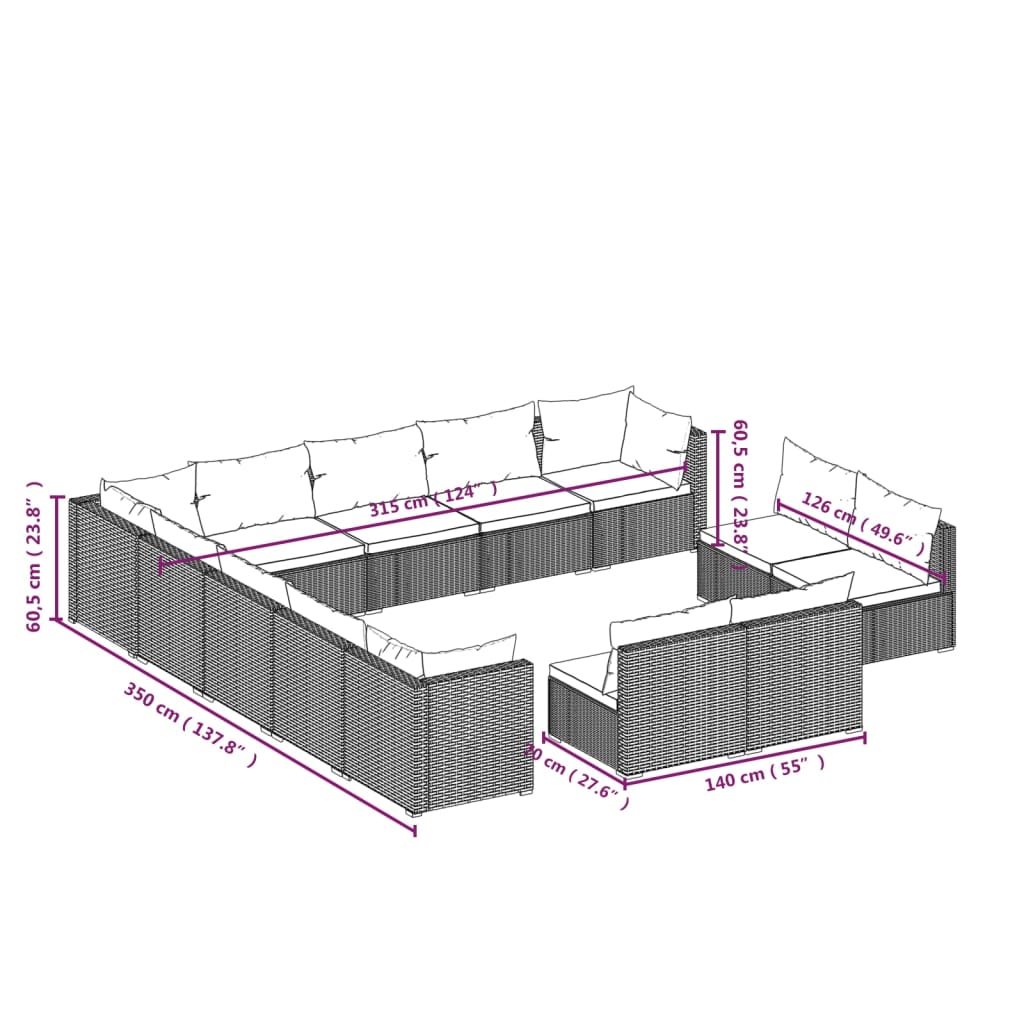 vidaXL 13 Piece Garden Lounge Set with Cushions Black Poly Rattan
