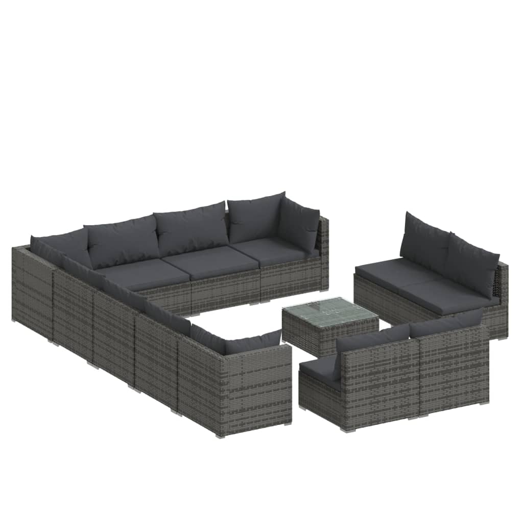 vidaXL 13 Piece Garden Lounge Set with Cushions Grey Poly Rattan