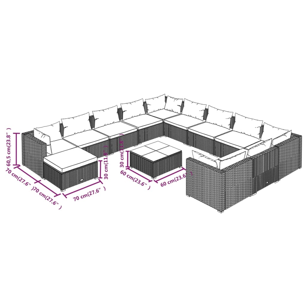 vidaXL 13 Piece Garden Lounge Set with Cushions Poly Rattan Grey