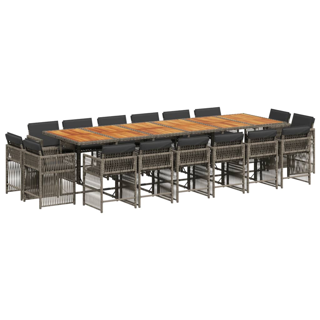 vidaXL 17 Piece Garden Dining Set with Cushions Grey Poly Rattan