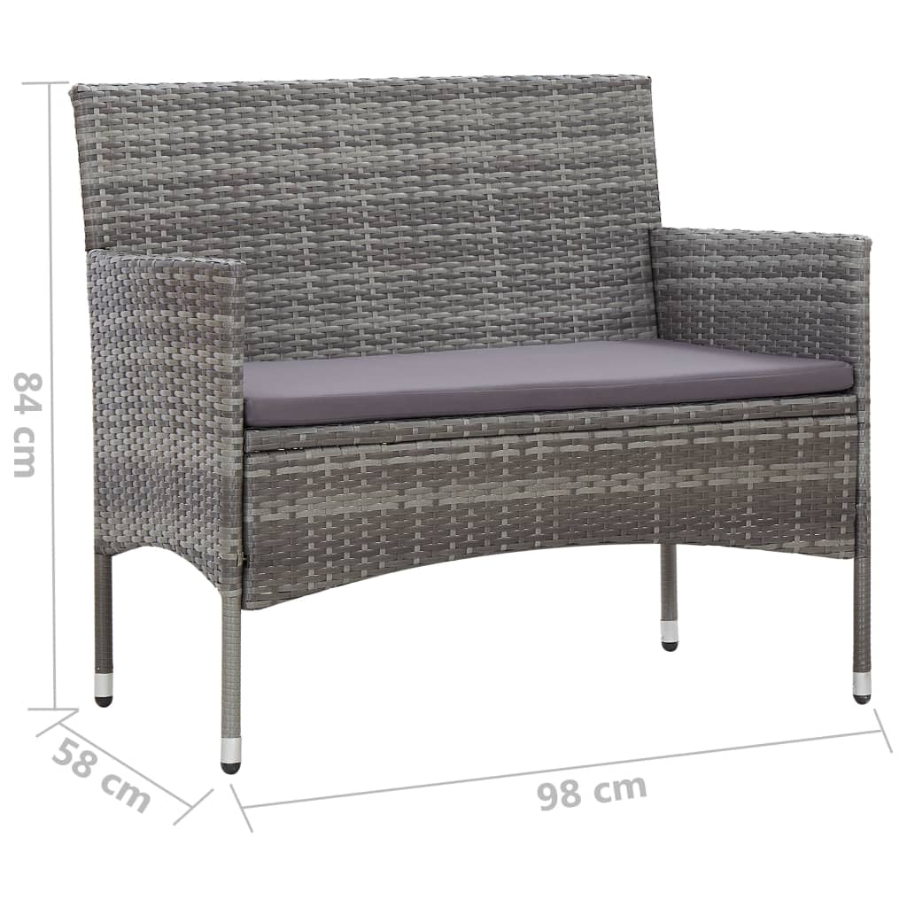 vidaXL 2 Piece Garden Lounge Set with Cushion Poly Rattan Grey