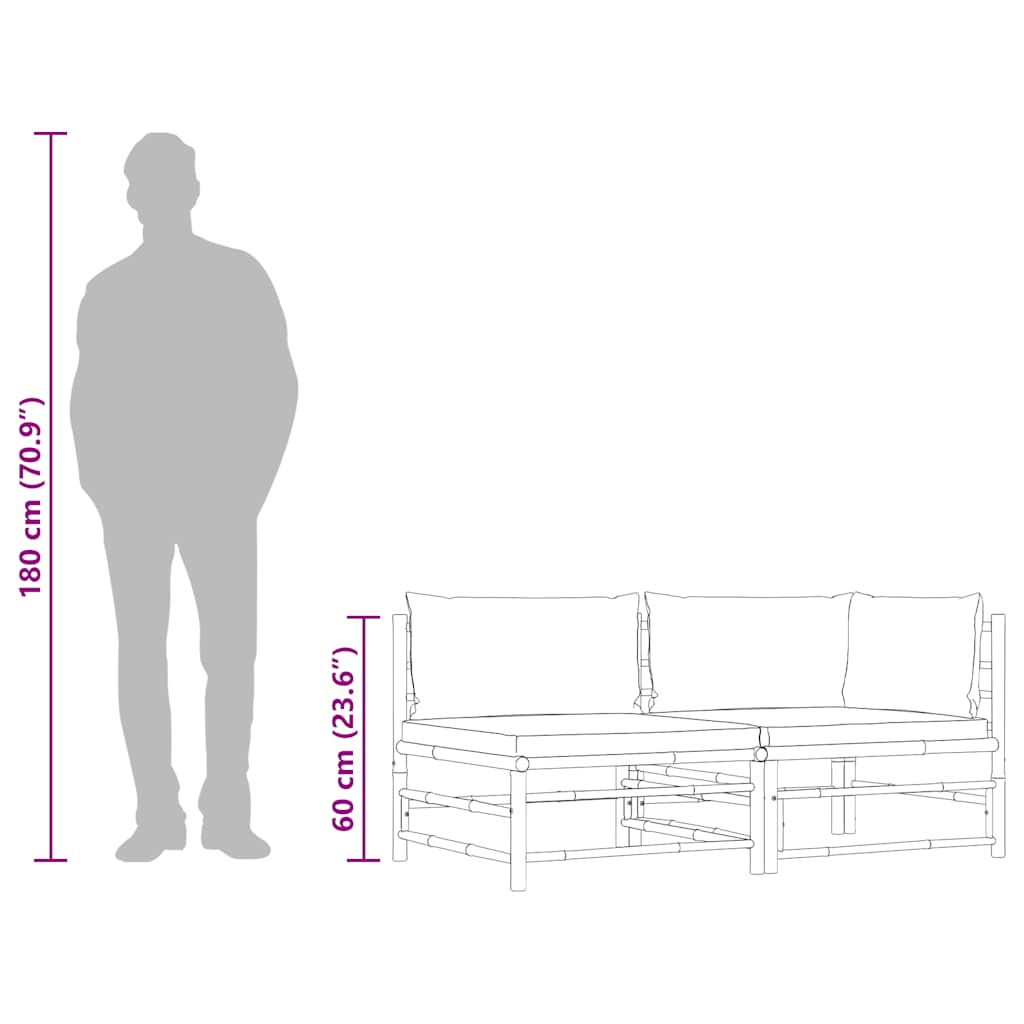 vidaXL 2 Piece Garden Lounge Set with Dark Grey Cushions Bamboo