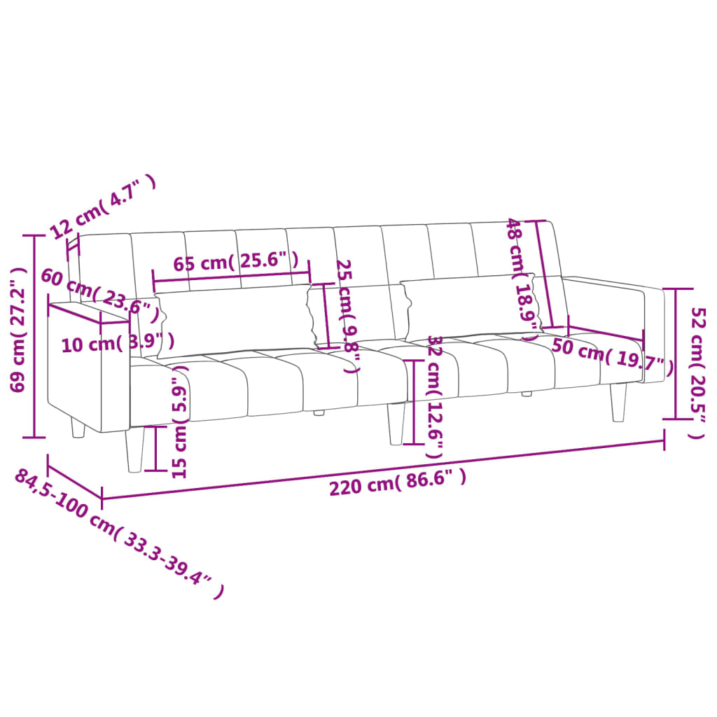 vidaXL 2-Seater Sofa Bed with Two Pillows Black Fabric