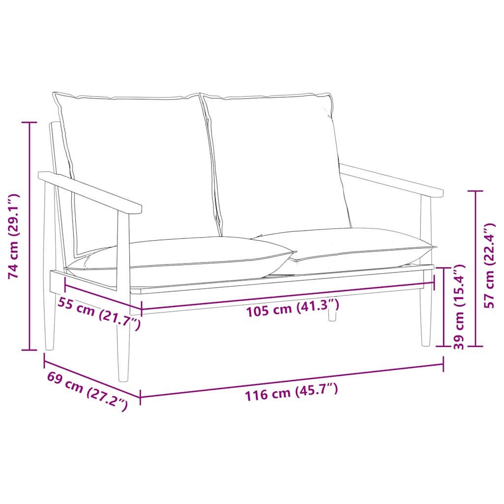 vidaXL 2-Seater Sofa Real Leather with Acacia Wood Brown