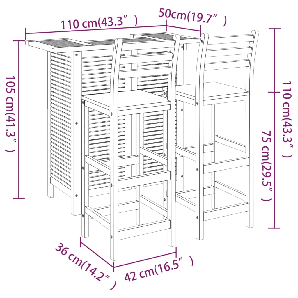 vidaXL 3 Piece Garden Bar Set Solid Wood Acacia
