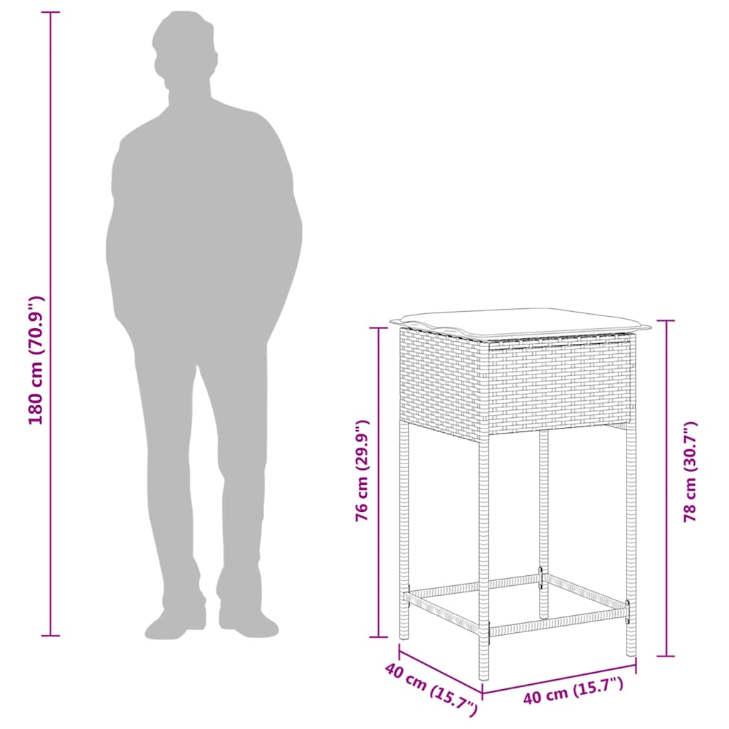 vidaXL 3 Piece Garden Bar Set with Cushions Grey Poly Rattan