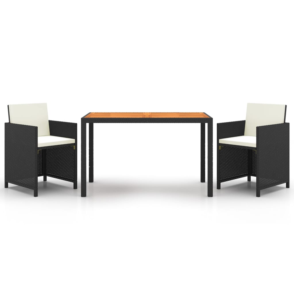 vidaXL 3 Piece Garden Dining Set with Cushions Poly Rattan Black
