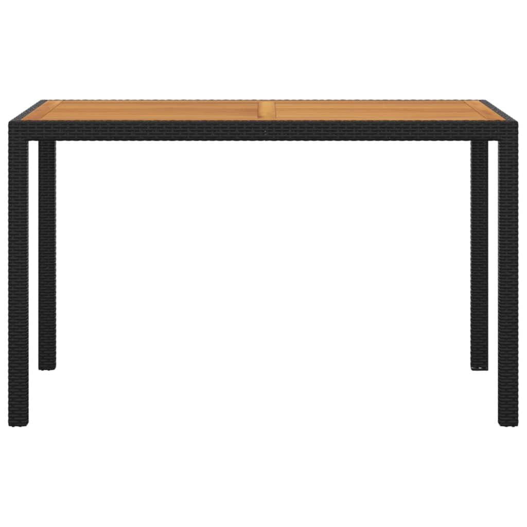 This garden dining set, with an elegant and contemporary design, will be a great choice for dining or relaxing in the garden. Suitable for outdoor use: Made of weather-resistant and waterproof PE rattan, this outdoor dining set is easy to clean, hard-wearing and suitable for daily use. Premium material: The powder-coated steel frame makes the table and chairs sturdy and durable. The tabletop is made of solid acacia wood with a natural oil finish, a tropical hardwood, which is weather-resistant and highly durable. The thick, soft, foam-filled seat and back cushions also add additional seating comfort. The removable and washable cushion covers are equipped with zips.Flexible design: You can pull the backrest down and store the chairs under the table, saving valuable storage space when the set is not in use. Thanks to the lightweight construction, all items are easy to move. Note:In order to extend the life of your outdoor furniture, we recommend you to protect it with a waterproof cover.