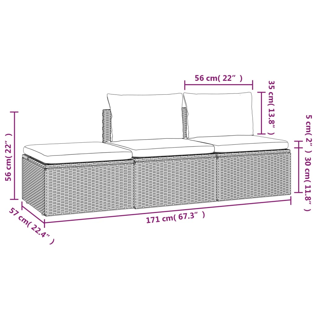 vidaXL 3 Piece Garden Lounge Set with Cushions Grey Poly Rattan