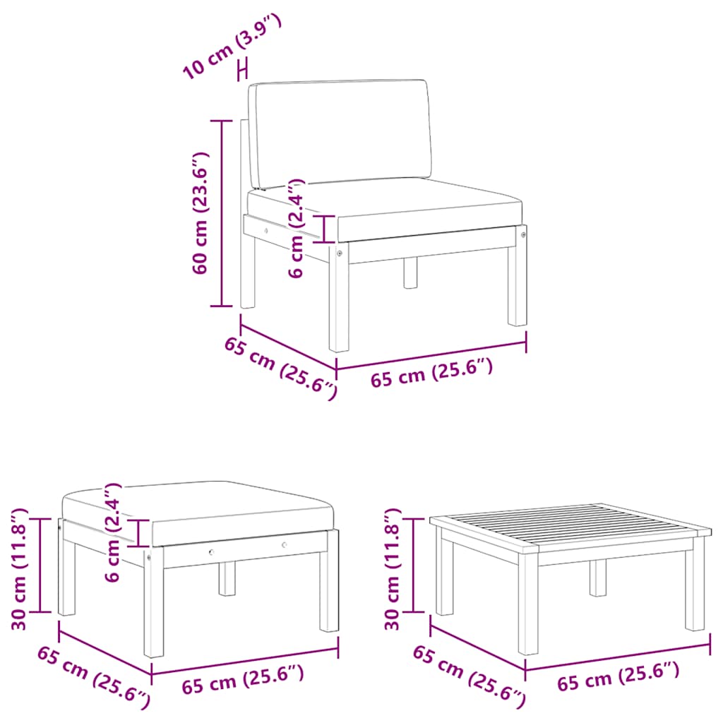 • Middle sofa dimensions: 65 x 65 x 60 cm (W x D x H)